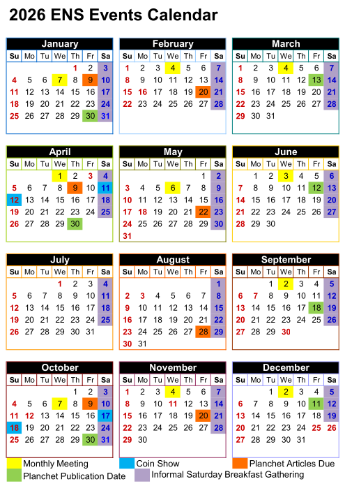 ENS award winning "The Planchet ©" An award winning Numismatic publication offering info on society events, articles on coins, paper money, tokens, medals and more.