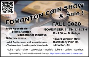 Edmonton Numismatic Society Coin Show & Sale (Fall) Nov 14th & 15th, 2020